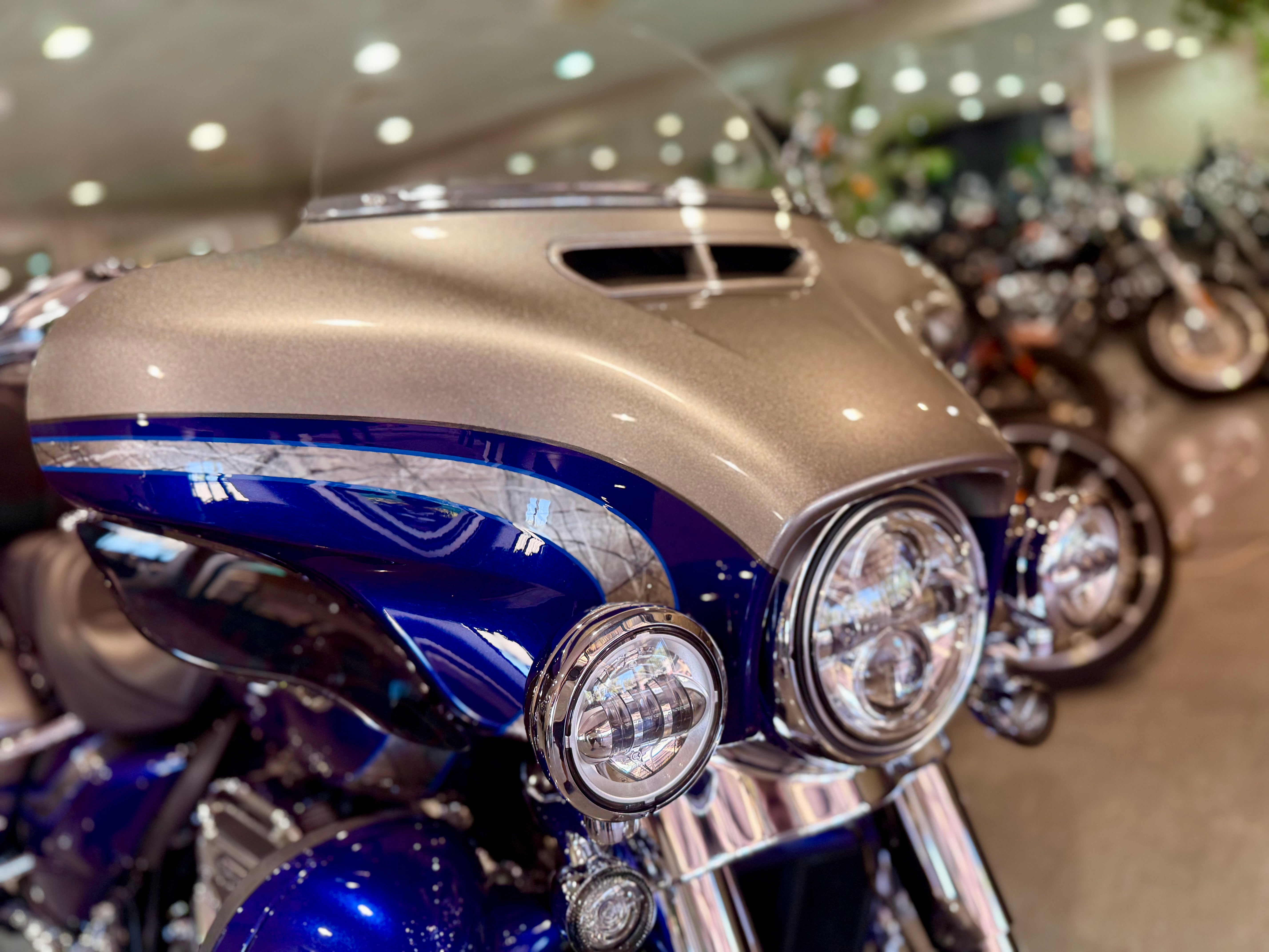 Simply stunning CVO Ultra Limited in showroom condition with super low kms. Presented in a striking blue and silver metallic paint scheme with detailed pin-striping. Nothing to spend, all the equipment CVO's are synonymous for with added performance mufflers. All keys and books included. Competitive finance available, enquire today.