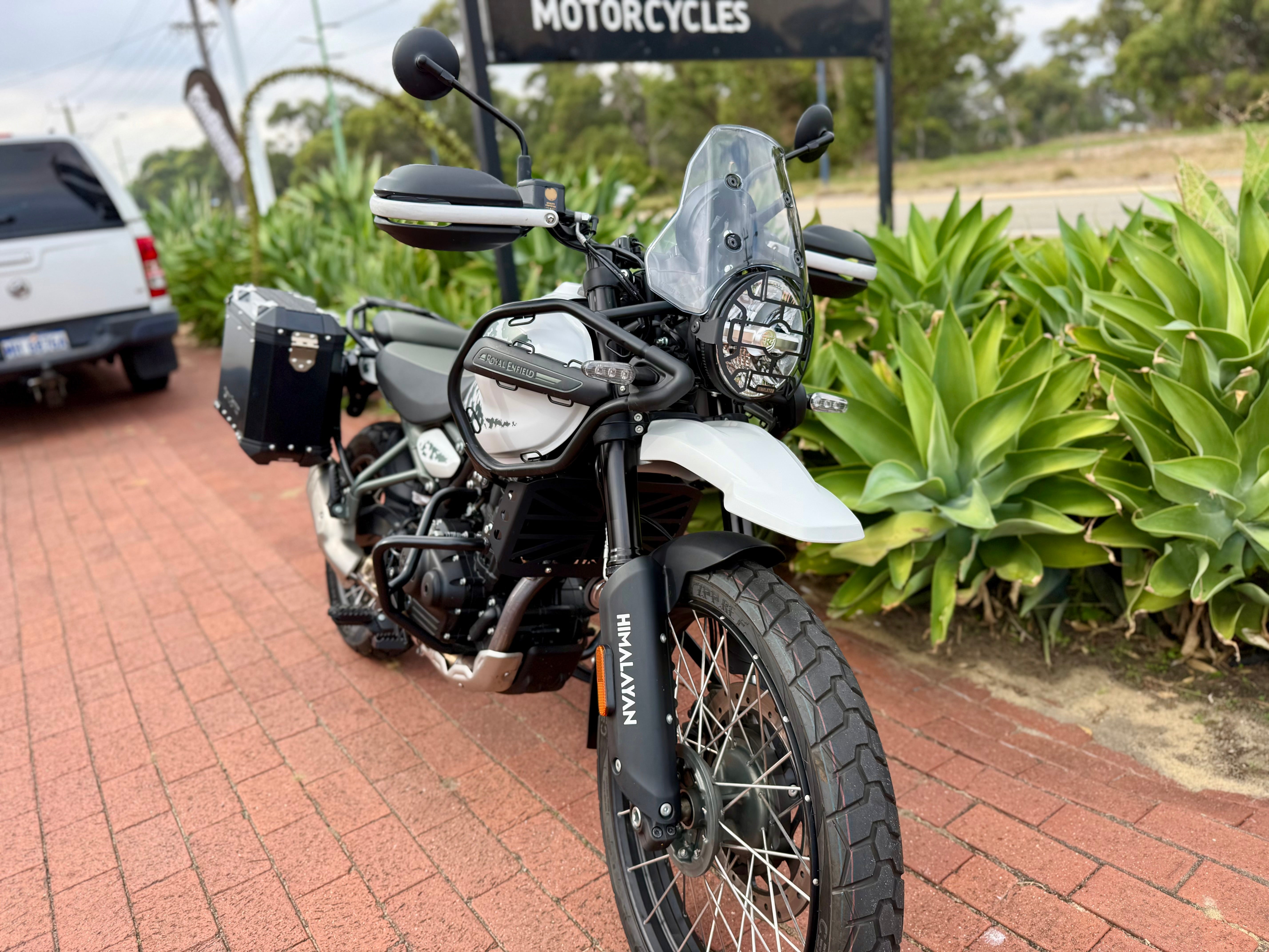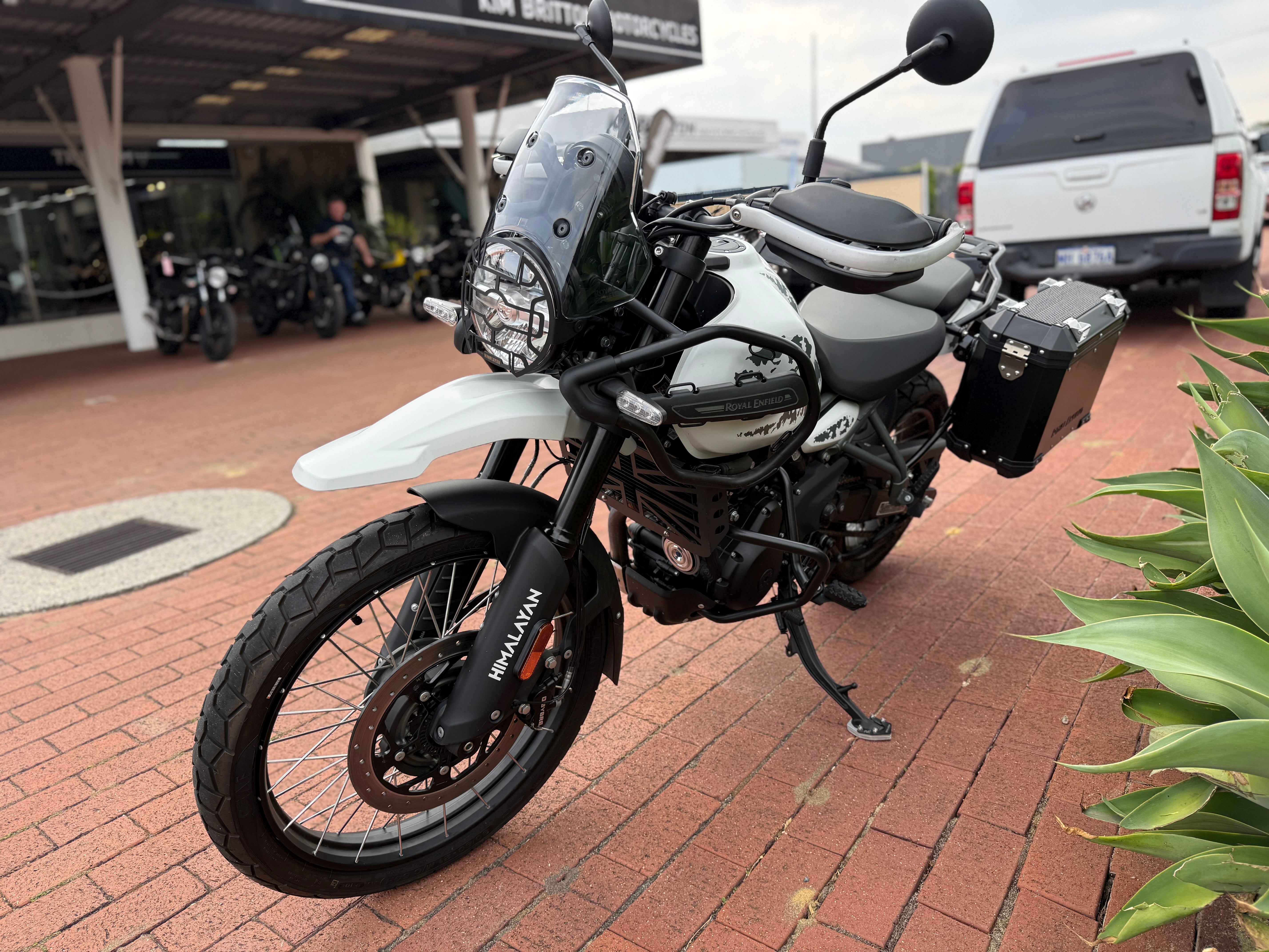 As new condition Himalayan with super low kms. One owner from new, first service just completed. All keys and books. Fitted with genuine panniers, upper and lower engine bars, radiator guard, headlight guard, heated grips and hand guards. Competitive finance available, enquire today.