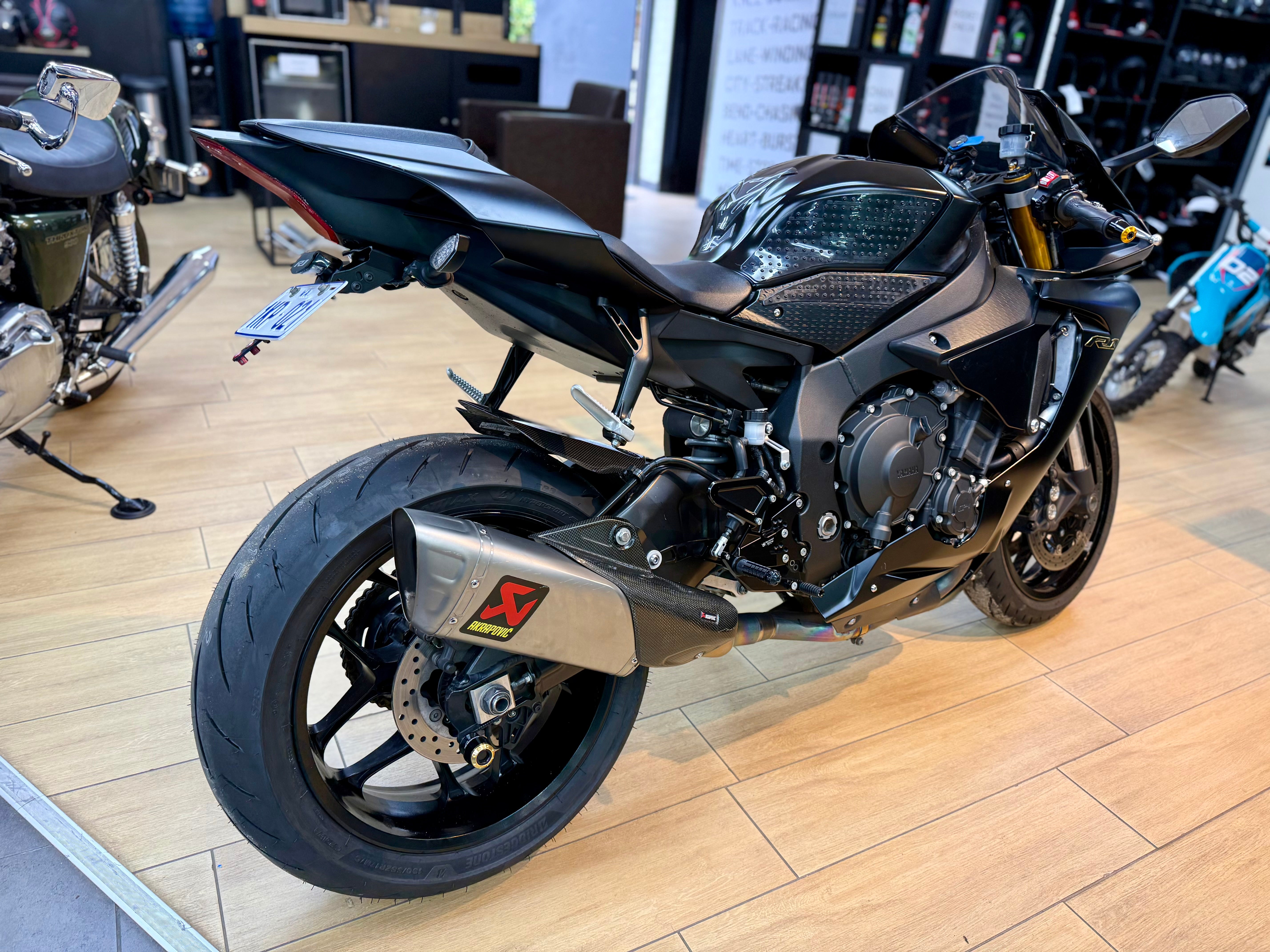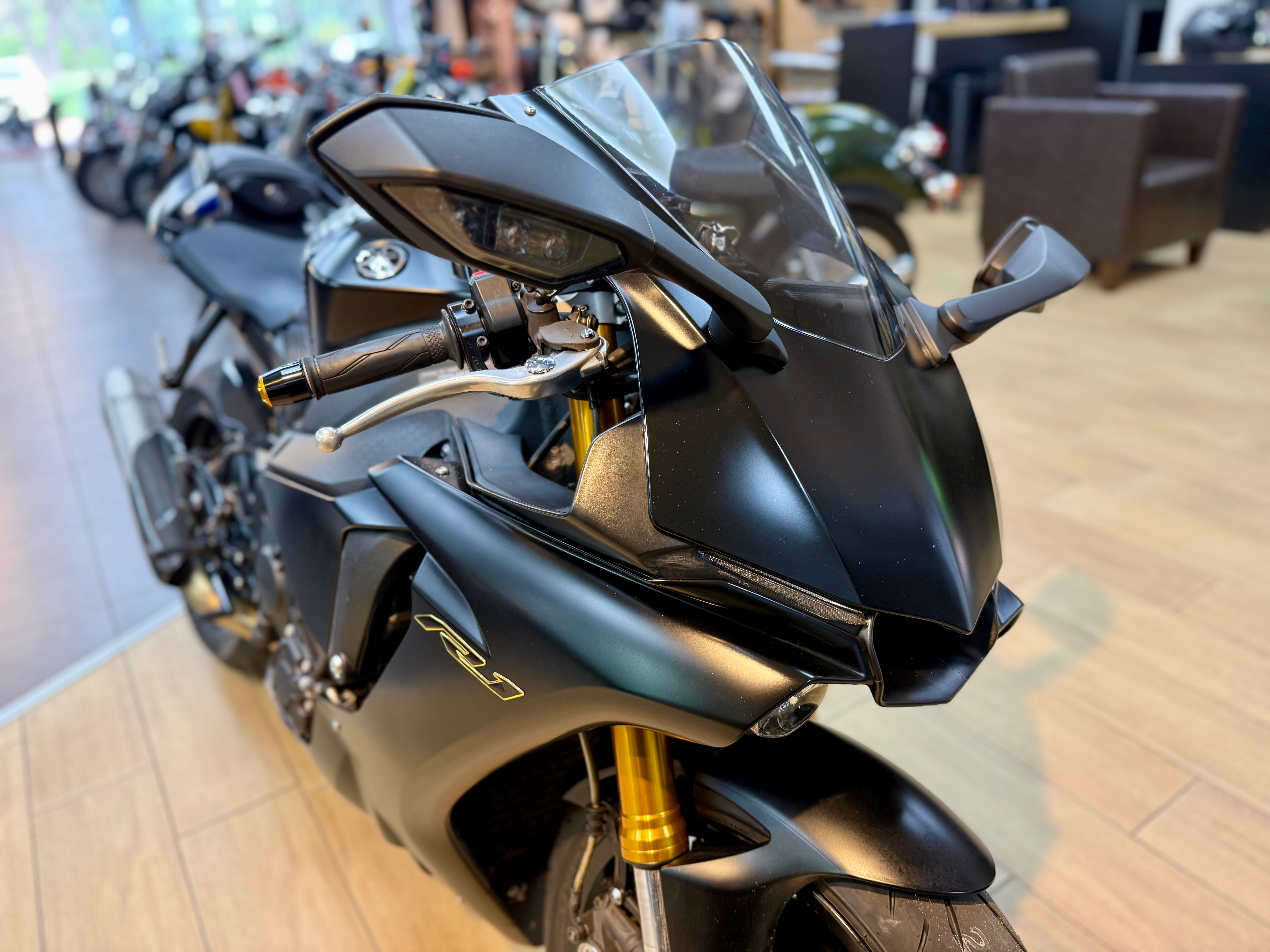 Stealth looking R1 in matt black. Fitted with Akrapovic 3/4 system, rear sets, quick shifter, carbon rear hugger, tank grips and tail tidy. Just serviced with new tyres and fork seals replaced. The most sought after super bike, ready to get on and go! Competitive finance available, enquire today.